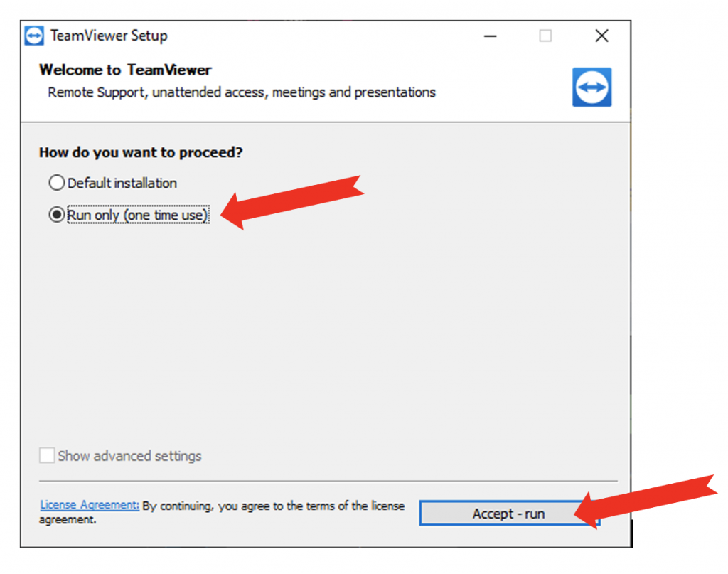 4. เริ่มทำการติดตั้งโปรแกรม เลือกเป็น “Run only (one time use)”จากนั้นกด “Accept-run”