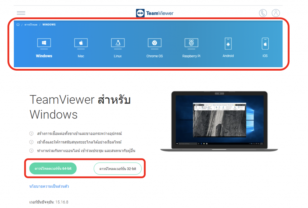 - ให้ทำการดาวน์โหลดโปรแกรม TeamViewer โดยเข้าไปที่ คลิกที่นี่เพื่อดาวน์โหลด