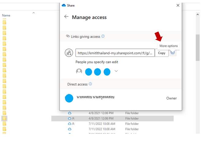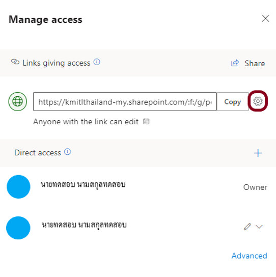 - People in KMITL with the link: ทุกคนในสถาบันสามารถเข้าถึงไฟล์ได้ แต่บุคคลภายนอกองค์กรไม่สามารถเข้าถึงไฟล์ได้