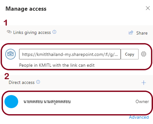 - People in KMITL with the link: ทุกคนในสถาบันสามารถเข้าถึงไฟล์ได้ แต่บุคคลภายนอกองค์กรไม่สามารถเข้าถึงไฟล์ได้