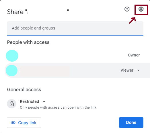 หากต้องการกำหนดให้ผู้ที่เป็น Editors ไม่สามารถแก้ไขสิทธิ์และการแชร์ได้ให้ คลิกที่รูปเฟือง มุมขวาบน