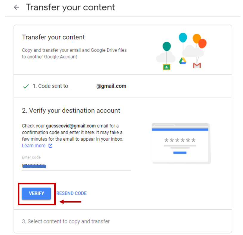 4. เปิด Gmail ปลายทางที่กรอกไปเมื่อซักครู่ จากนั้นคลิกเปิดอีเมล์ฉบับที่ชื่อว่า Verify your account จากนั้นคลิก Get confirmation code นำ code ที่ปรากฏ มากรอกในขั้นตอน “Verify your destination account” จากนั้นคลิก VERIFY