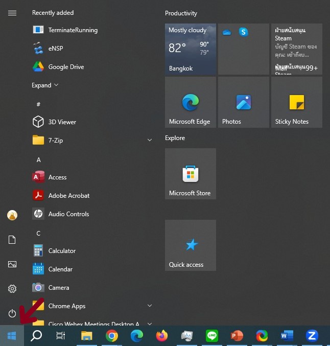 คลิกสัญลักษณ์ ที่มุมด้านซ้ายล่าง