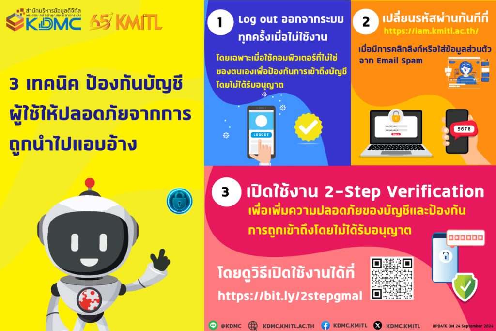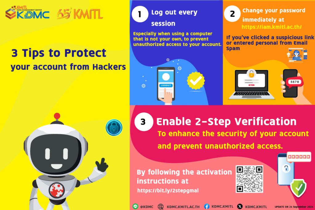 KMITL Data Management Center (KDMC) brings you easy steps to secure your account and safeguard it from cyberattacks: