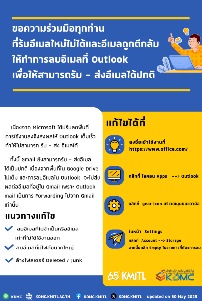 ผู้ใช้งานที่ไม่สามารถรับ – ส่งอีเมลได้ตามปกติให้ดำเนินการดังนี้