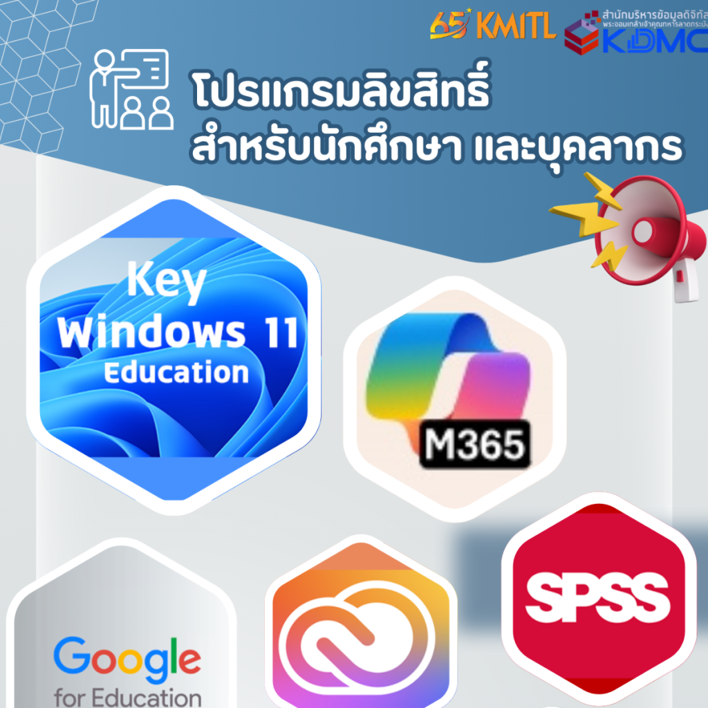 📣 สำนักบริหารข้อมูลดิจิทัลพระจอมเกล้าเจ้าคุณทหารลาดกระบัง (KDMC) มอบสิทธิพิเศษให้นักศึกษาและบุคลากร สจล. ได้ใช้โปรแกรมลิขสิทธิ์แท้ ฟรี!