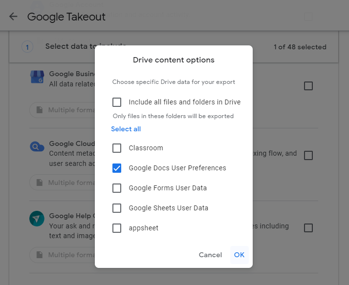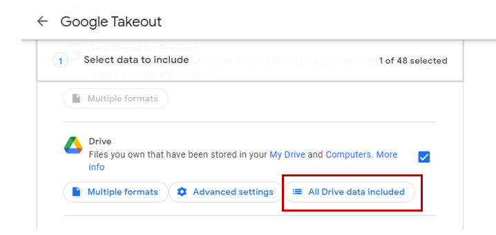 2. ในตัวเลือก All Drive data included สามารถเลือกลำดับไฟล์ที่จะทำการดาวน์โหลดได้