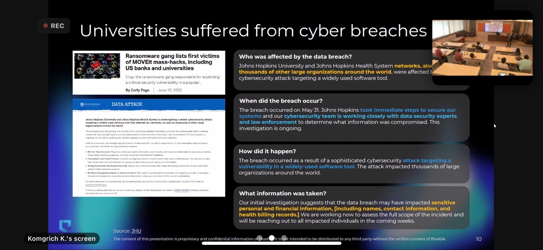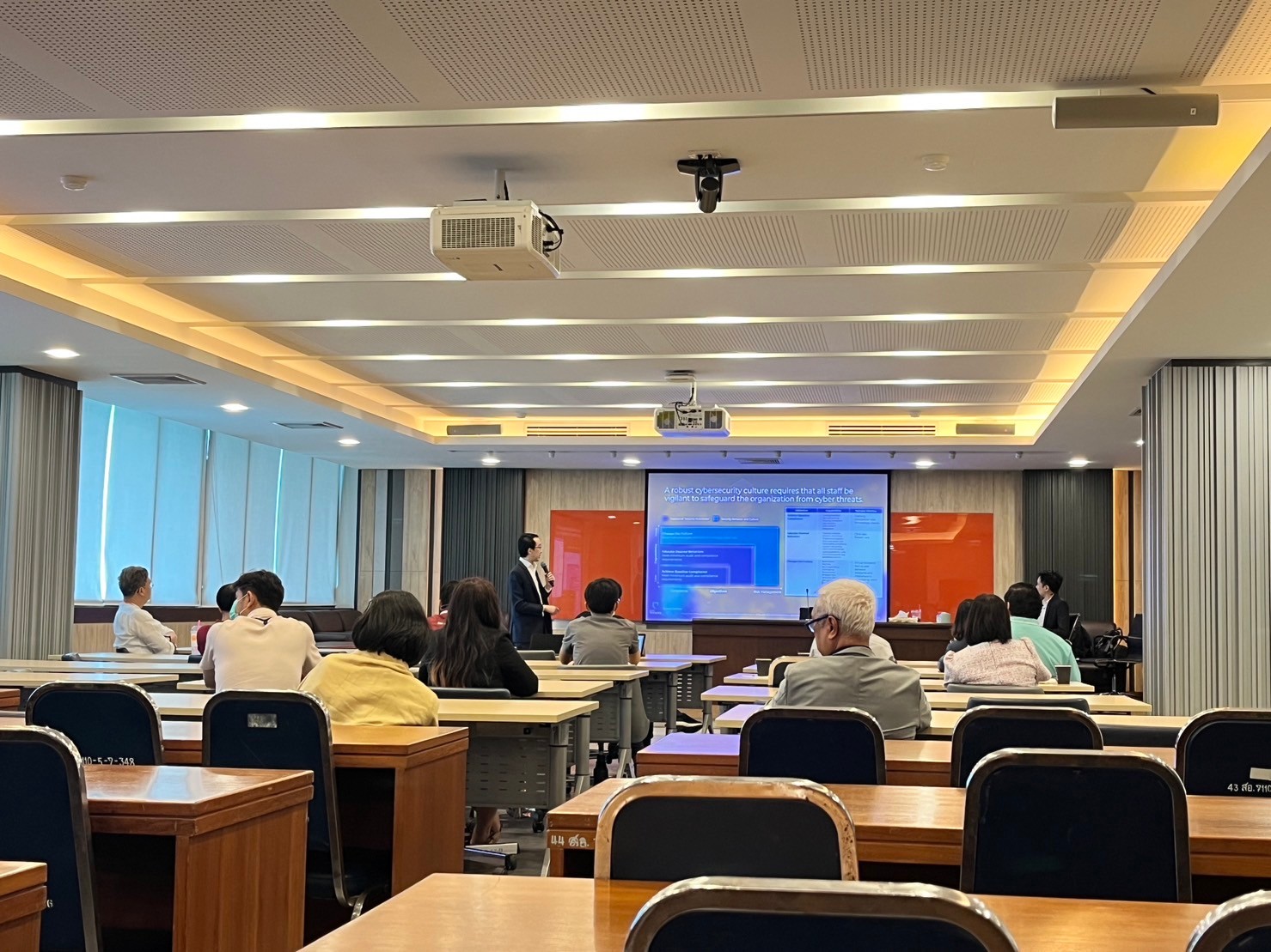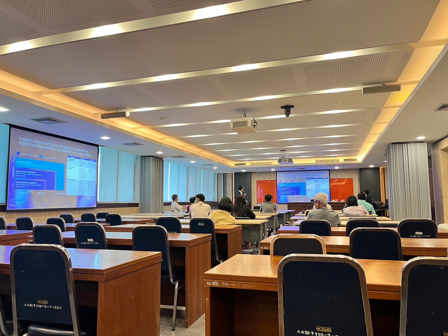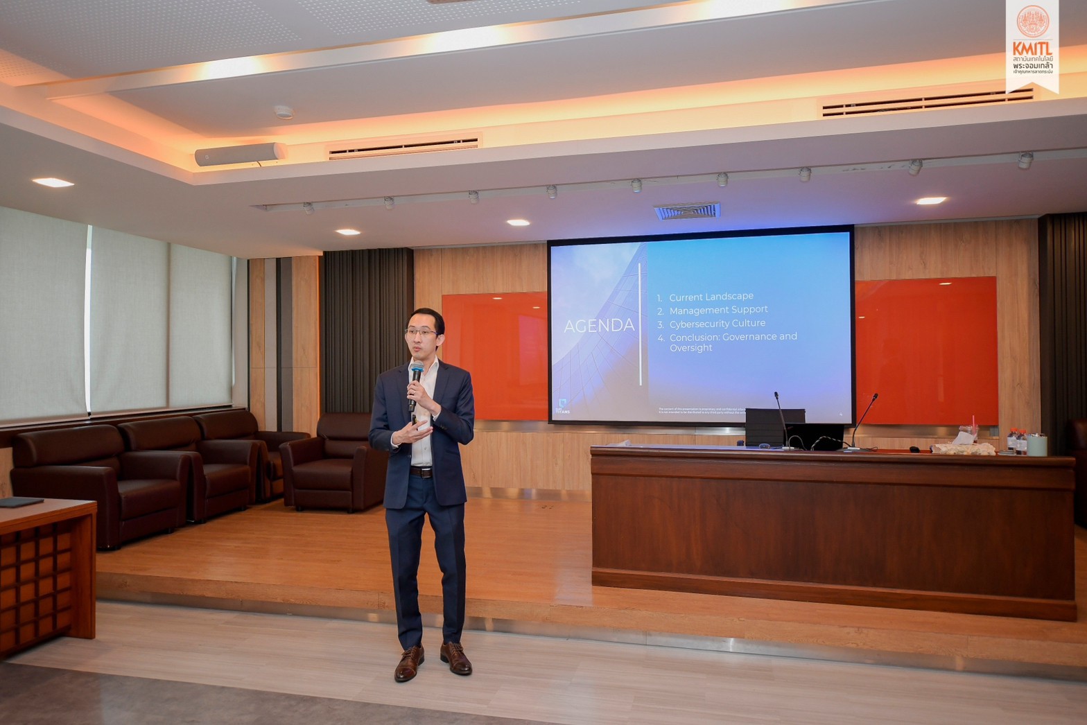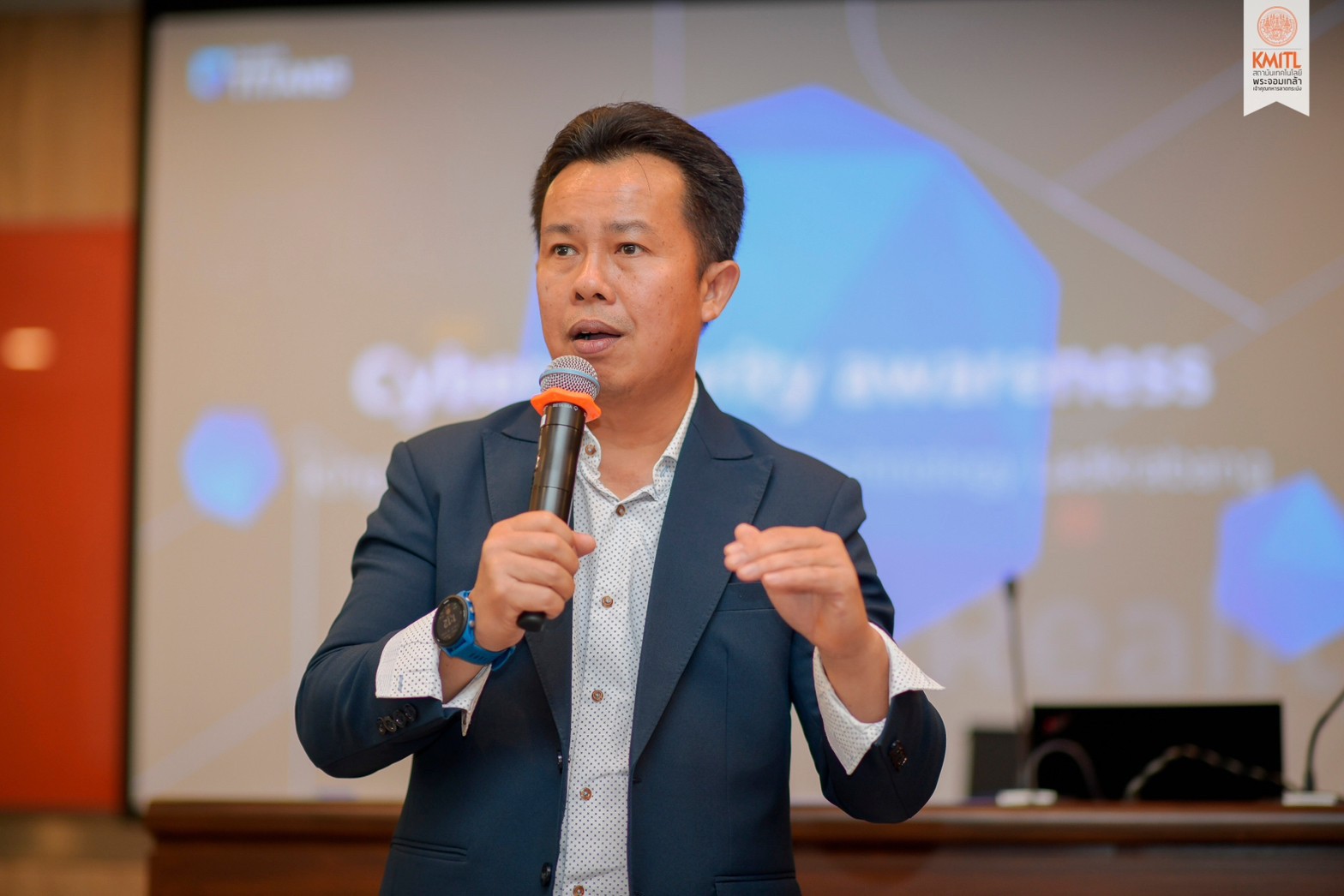 สำนักบริหารข้อมูลดิจิทัลฯ ได้จัดโครงการสร้างความตระหนักรู้ภัยคุกคามทางไซเบอร์สำหรับผู้บริหาร เมื่อวันพฤหัสบดีที่ 13 กรกฏาคม 2566 ที่ผ่านมา เพื่อเป็นการสร้างความตระหนักรู้ให้กับผู้บริหาร ให้เกิดความร่วมมือปฏิบัติตามนโยบายการรักษาความมั่นคงปลอดภัยด้านเทคโนโลยีสารสนเทศ ของสถาบันเทคโนโลยีพระจอมเกล้าเจ้าคุณทหารลาดกระบัง พ.ศ. ๒๕๕๙ ได้อย่างสอดคล้องและเหมาะสม ช่วยลดความเสียหายต่อการดำเนินงาน ทรัพย์สิน บุคลากร ของสถาบัน ทำให้สามารถดำเนินงานได้อย่างมั่นคงปลอดภัย รวมถึงการรักษาความมั่นคงปลอดภัยการเข้าถึงและใช้งานระบบสารสนเทศและการสื่อสารได้อย่างสะดวกรวดเร็ว ทั้งนี้ทางสำนักบริหารข้อมูลดิจิทัลฯได้รับเกียรติจากท่านอธิการบดี รศ.ดร.คมสัน มาลีสี ท่านอธิการบดี ให้แนวทางในการสร้างความตระหนักในการดูแลความปลอดภัยในส่วนของข้อมูลดิจิทัล เพื่อเป็นการป้องกันภัยคุกคาม ที่อาจจะเกิดขึ้นกับข้อมูลรวมถึงป้องกันความมั่นคงปลอดภัยของอุปกรณ์ระบบเทคโนโลยีสารสนเทศ ข้อมูล ซึ่งเป็นทรัพย์สินที่มีค่า และต้องรักษาความลับ ให้มีความมั่นคงปลอดภัยและเชื่อถือได้ โดยวิทยากรผู้บรรยายทางสำนักบริหารข้อมูลดิจิทัลฯ ได้รับเกียรติและความร่วมมือจาก บริษัท Bluebik Titans
