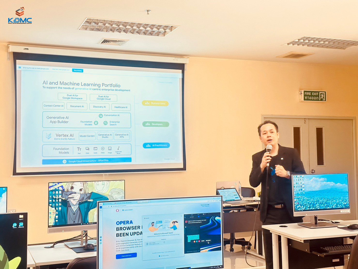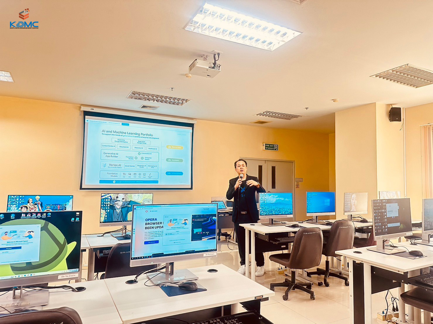 ภาพบรรยากาศ กิจกรรมเรียนรู้ Google Cloud Skills Boost โดยผู้เชี่ยวชาญจาก Google Thailand คุณ Mile Chawalitsoonthorn กิจกรรมดังกล่าวมีผู้สนใจเข้าร่วมเป็นจำนวนมาก ทั้งนี้ผู้เข้าร่วมกิจกรรมได้รับการปูพื้นฐานการทำ lab chatbot บน cloud-based platform ด้วย Vertex AI Generative AI Studio โดยกิจกรรมครั้งนี้จัดขึ้นที่ ห้องคอมพิวเตอร์ 3 ชั้น 2 อาคารเฉลิมพระเกียรติ (KLLC ตึก A สำนักการเรียนรู้ตลอดชีวิตฯ)