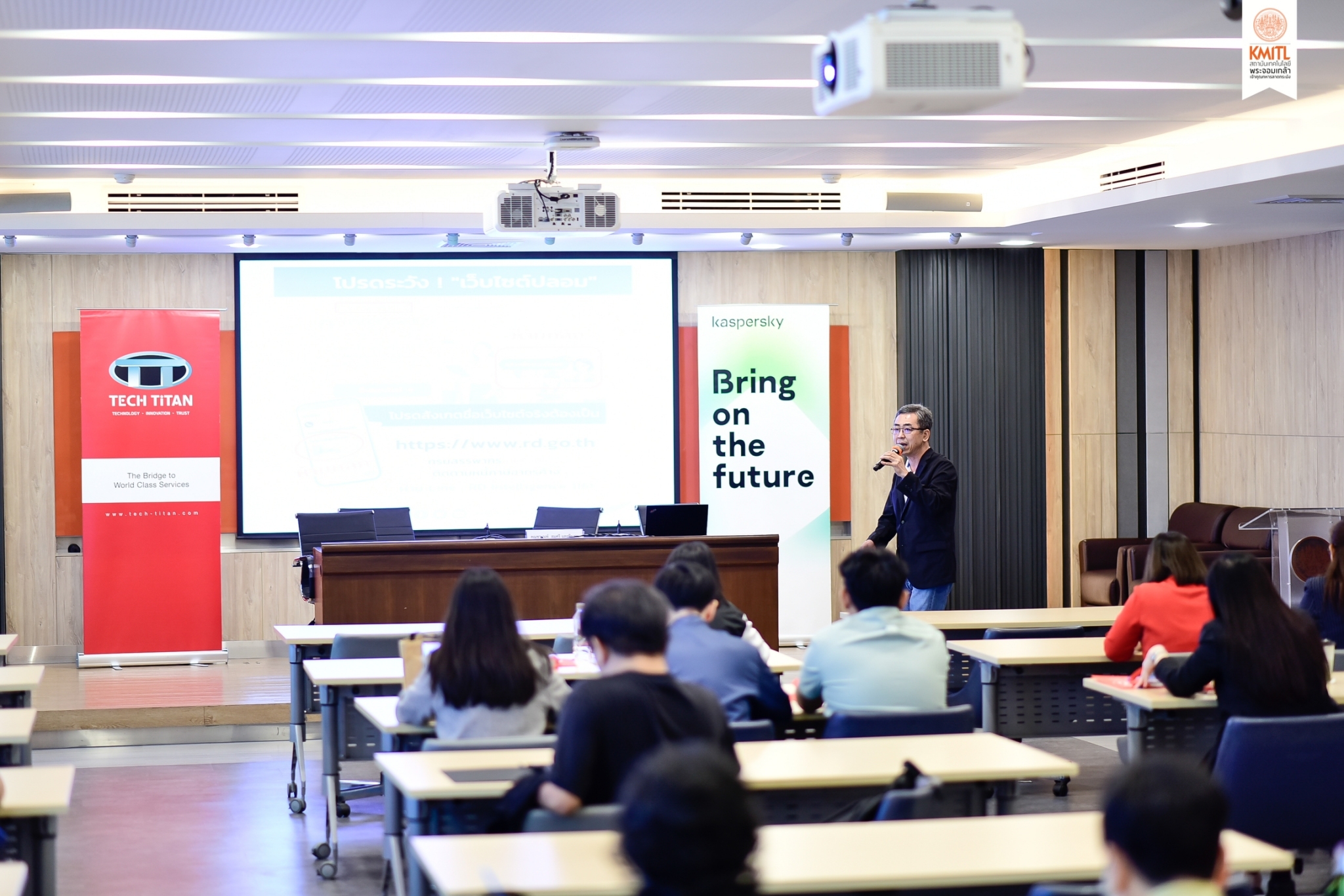 ภาพบรรยากาศ งานสัมนา “รู้เท่าทันภัยไซเบอร์ด้วย Kaspersky” โดยบริษัท แพร็กม่า เทคโนโลยี จำกัด และ บริษัทเทคไตตัน ดิสทริบิวชั่นจำกัด ผู้เข้าร่วมอบรมได้อัพเดทความรู้เกี่ยวกับประเภทภัยคุกคาม และรูปแบบการหลอกลวงต่างๆ ทางไซเบอร์ และได้เรียนรู้ความสามารถของโปรแกรม Antivirus Kaspersky ว่ามีการดักจับภัยคุกคามต่างๆ อย่างไร ทั้งนี้ผู้ที่ได้เข้าร่วมงานสัมนาทุกท่านได้รับสิทธิ์ ติดตั้ง Zimperium MTD on Mobile ใช้ในการตรวจจับภัยคุกคามบนมือถือ ซึ่งเป็นสิทธิพิเศษจากทางบริษัท แพร็กม่า และเทคไตตัน ดิสทริบิวชั่นจำกัด โดยระยะเวลาใช้งานฟรี 1 เดือน กิจกรรมครั้งนี้จัดขึ้นที่ ห้องประชุม 701 (ห้องบุนนาค) ชั้น 7 อาคารกรมหลวงนราธิวาสราชนครินทร์