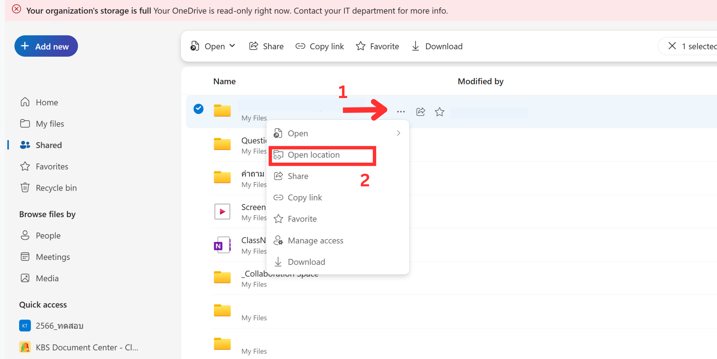 หลังจากตรวจสอบพื้นที่คงเหลือแล้ว สามารถทำการสำรองข้อมูลจาก OneDrive-KMITL ลงเครื่องคอมพิวเตอร์ ได้ดังนี้