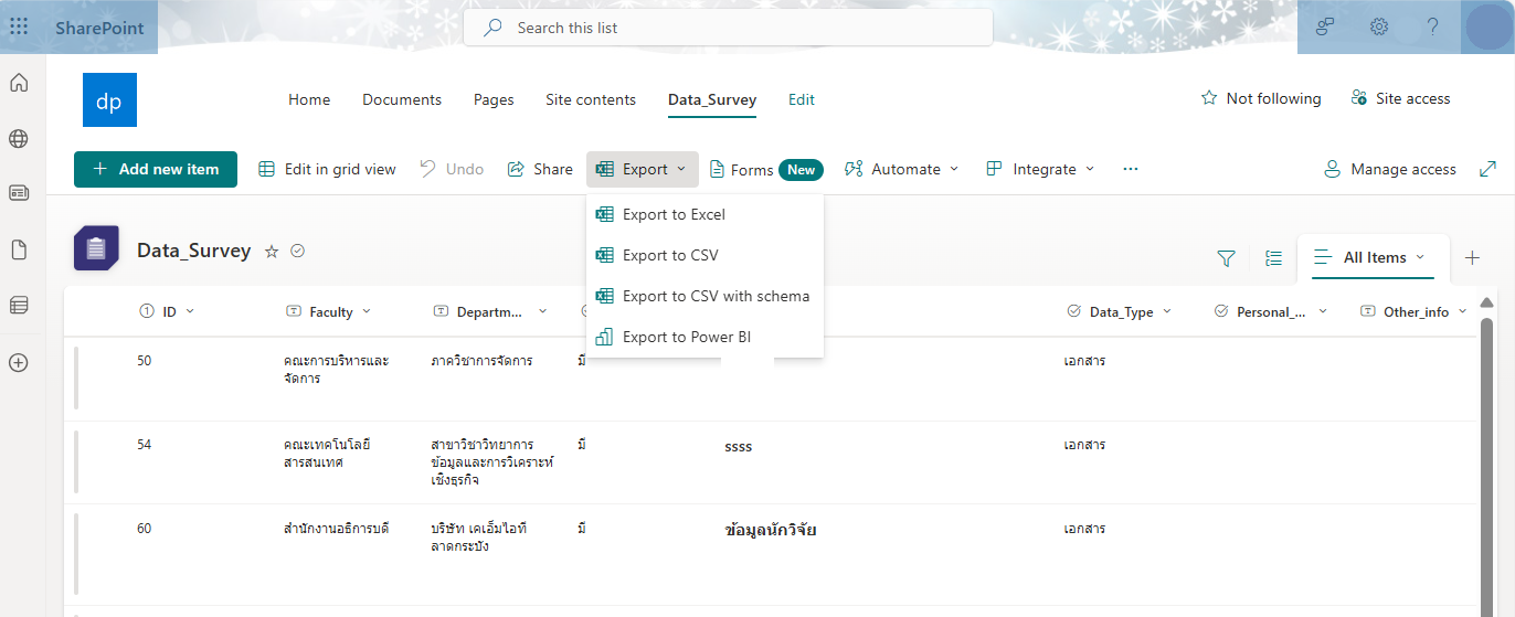 วิธี Export SharePoint List และไฟล์ข้อมูลจาก SharePoint Document