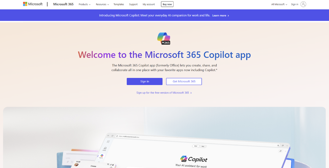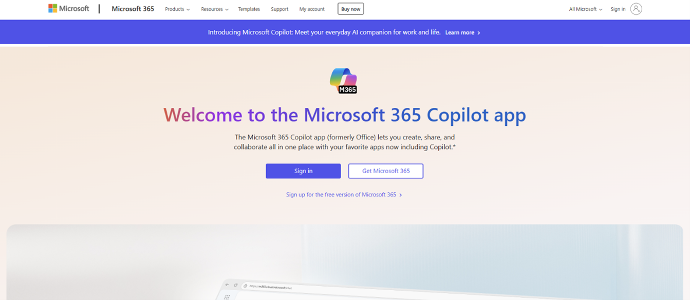 1.พิมพ์ office.com เพื่อเข้าสู่เว็บไซต์ Microsoft 365 และกดลงชื่อเข้าใช้ (Sign in)