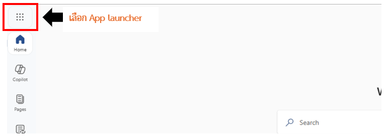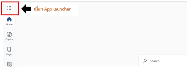 3.ที่หน้าของ Microsoft 365 คลิกเลือก App launcher เพื่อค้นหาเครื่องมือเพิ่มเติม