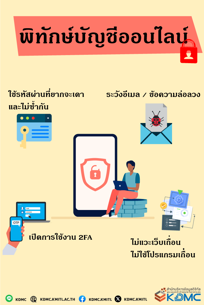 Did you know? Your KMITL email can be impersonated to gain access to systems you are authorized to use, or your personal information could be exploited to open financial services. To prevent such damages, you can protect your account from being compromised as follows:
