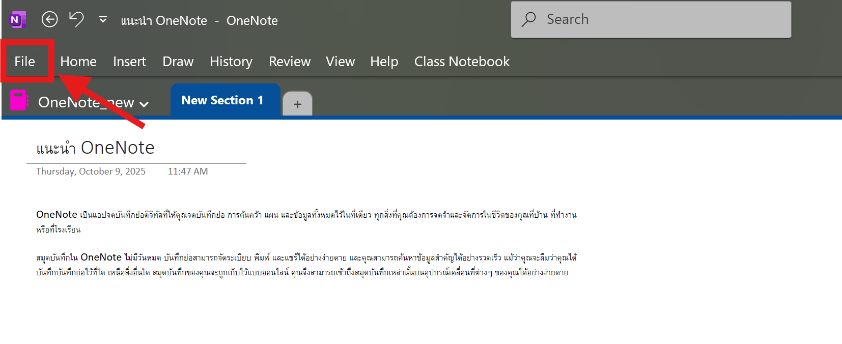 - If you see the File menu at the top bar, it means it’s OneNote on Windows (new version)