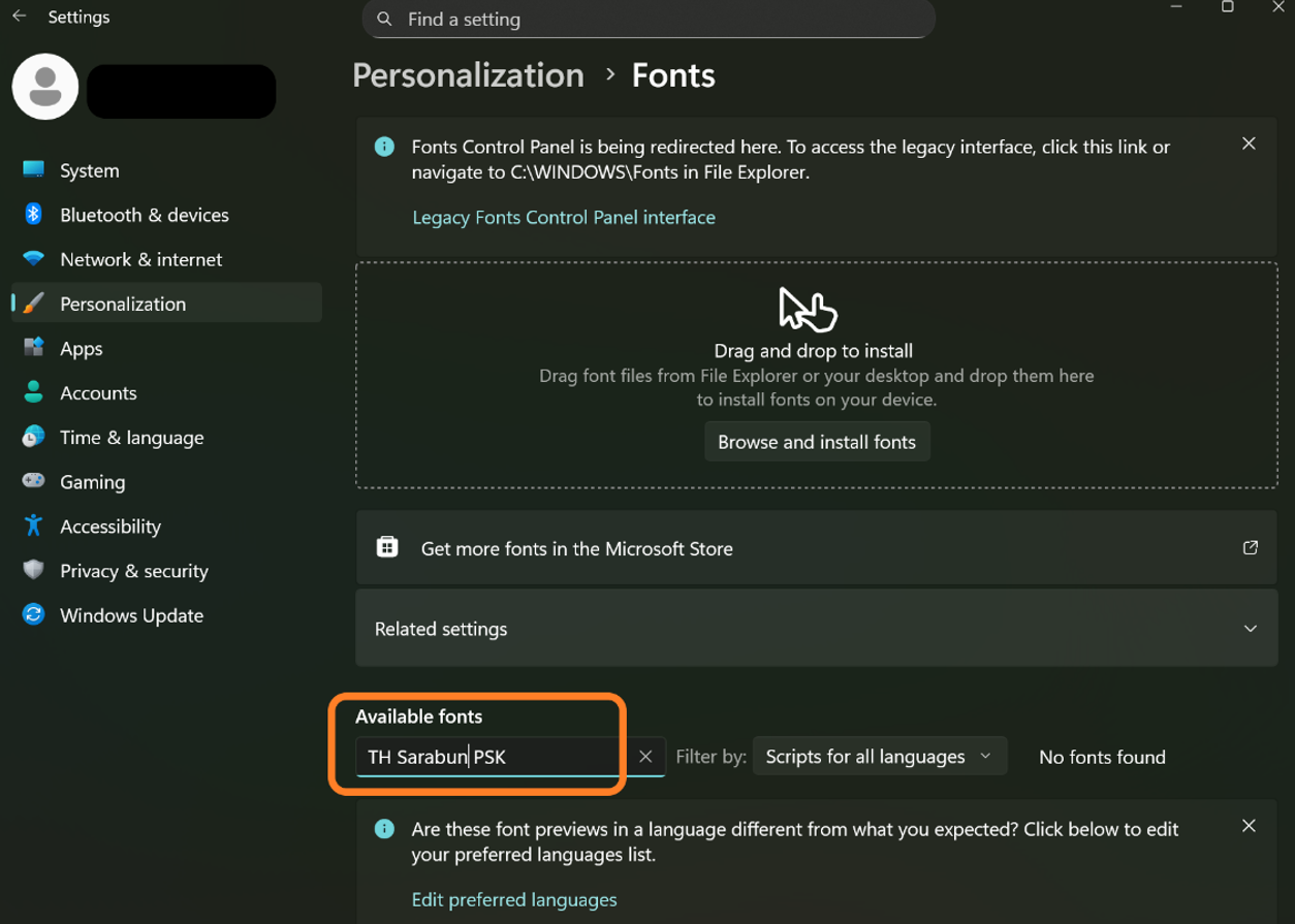 2. If TH Sarabun PSK already exists in the system, uninstall it first and then reinstall it using the steps above.