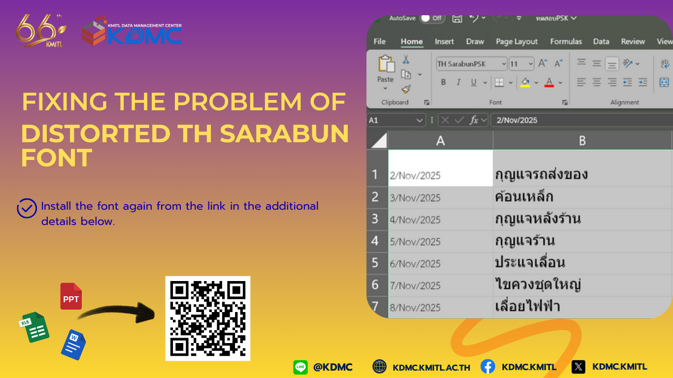 For users who use the TH SarabunPSK font when creating documents, you may have encountered issues such as inconsistent font rendering. Some text appears thicker, lighter, smaller, or larger than usual. This problem is often caused by an incomplete font installation or a corrupted font after a system update. You can resolve the issue by following these steps.