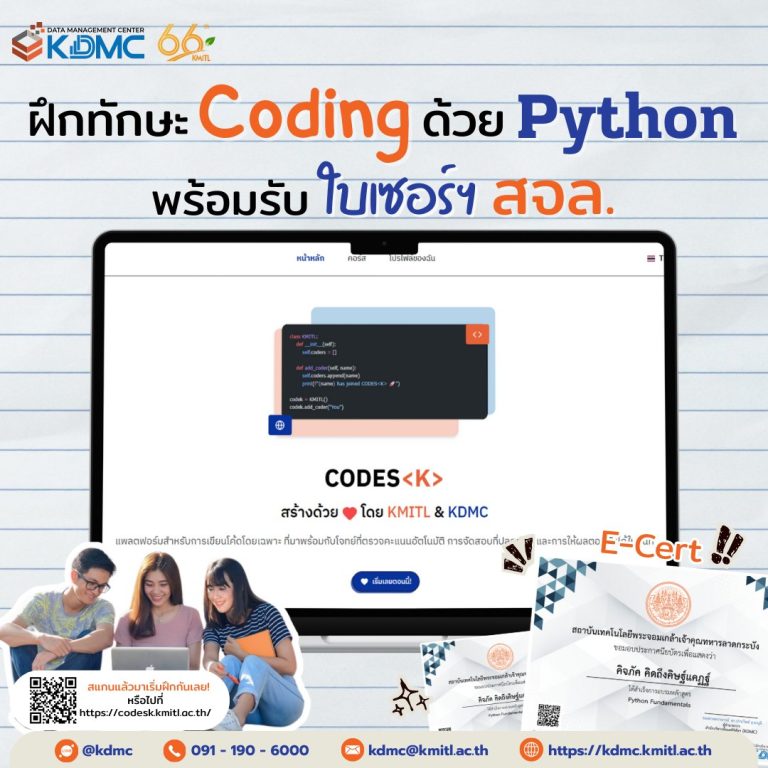 Level Up Your Coding with Python Get Certificate from KMITLNews & Announcements 🐍Python: The Must-Have Skill for Every Student! Boost your career no matter what you study! KDMC invites you to level up for FREE on CODES. 🚀Join Now: Python Fundamentals (Practical & Real-world) ✅Highlights: - Learning by Doing: Foundation-focused coding tasks. - 100% Free: No hidden costs - KMITL Certificate: Get certified as soon as you finish!“The first step to becoming a developer is simply starting —take that step today!” https://codesk.kmitl.ac.th/courses/68f87c405c2e559967184383 Updated on 2 February 2026