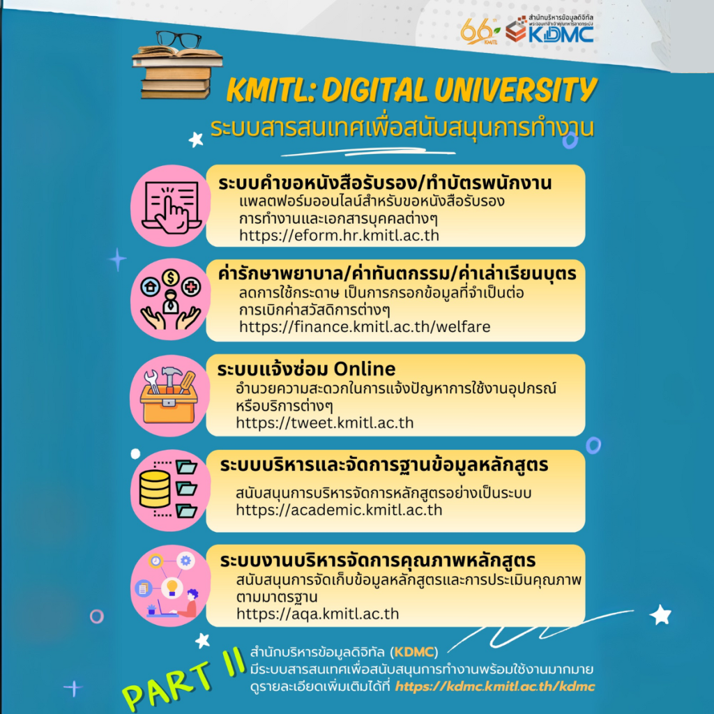 สำนักบริหารข้อมูลดิจิทัล (KDMC) พระจอมเกล้าเจ้าคุณทหารลาดกระบัง พร้อมสนับสนุนการทำงานให้สะดวก รวดเร็ว และลดการใช้เอกสาร ด้วย