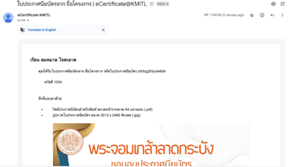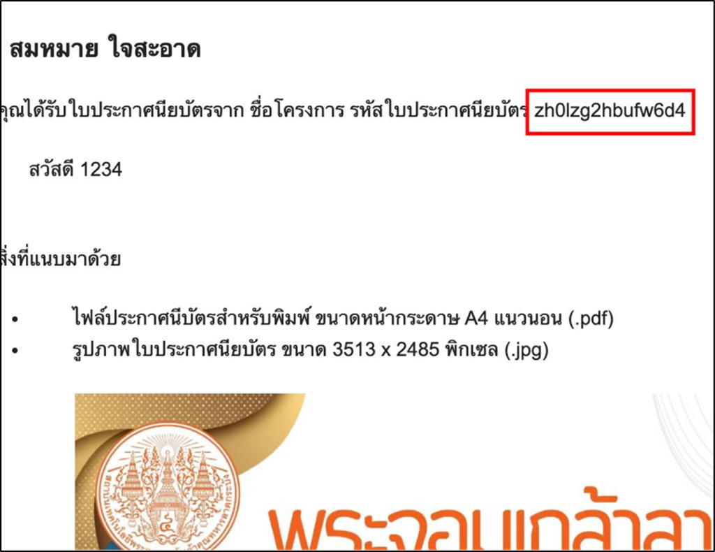 รูปภาพตัวอย่างเลขประจําใบประกาศนียบัตรภายในอีเมล