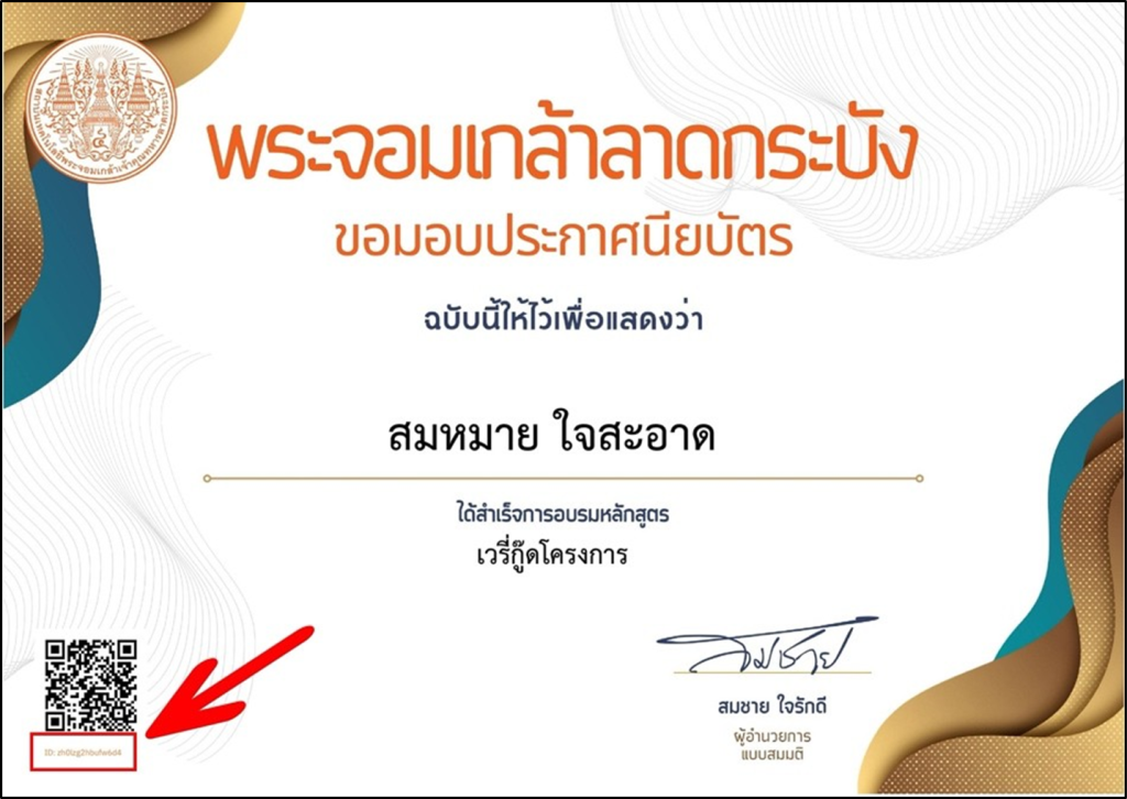 รูปภาพแสดงตัวอย่าง QR Code บนใบประกาศนียบัตร