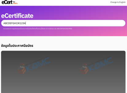 โดยหลังจากที่ท่านระบุรหัสประจําใบประกาศนียบัตร หรือแสกน QR Code แล้ว หน้าเว็บไซต์จะแสดงผล ใบระกาศนียบัตร หากเว็บไซต์แจ้งว่าไม่พบใบประกาศนียบัตร อาจเกิดจากใบประกาศนียบัตรนั้นเป็นของปลอม หรือยังไม่ได้รับการรับรองโดยเจ้าหน้าที่ออกใบประกาศนียบัตร